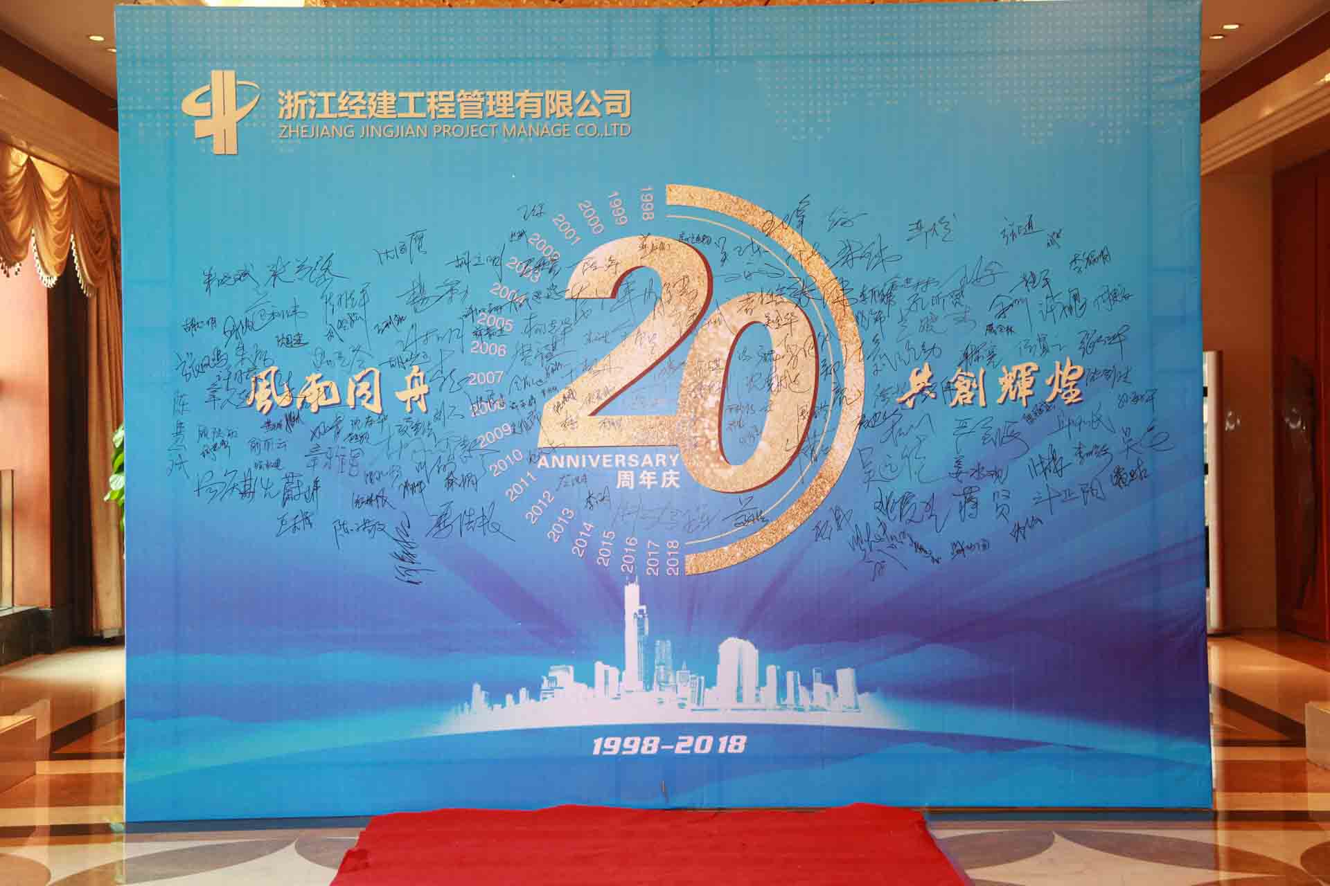 走进豪仕登大酒店三楼豪仕登厅宽敞的走廊,首先引入眼帘的是醒目的公司20周年庆典签名墙,全体与会者都在签名墙上签名并合影留念,为公司20周年庆典提前预热。