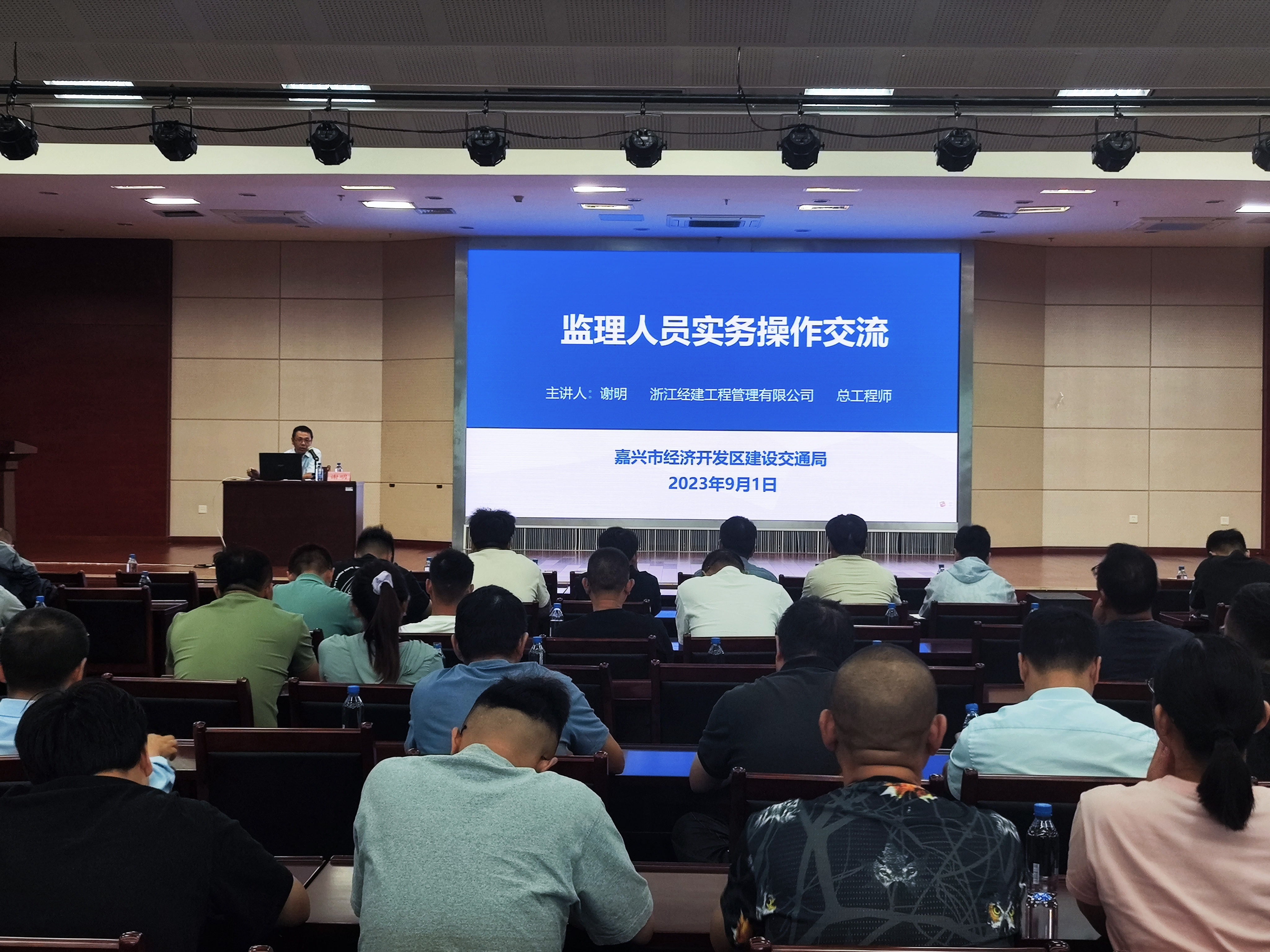 9月1日上午,我公司总工程师谢明受邀由嘉兴经济技术开发区建设交通局主办的全区建筑施工安全管理实务培训活动,作为主讲老师分享了监理人员实务操作与交流。